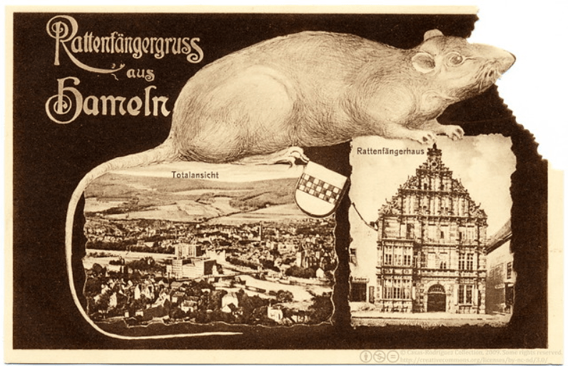 Rat-Catching Greetings from Hamelin (c.1930) by postaletrice.